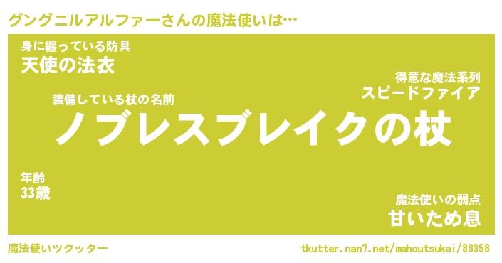 | ヒーロー風カッコイイあだ名 | 『スーパーグングニルアルファー』 |