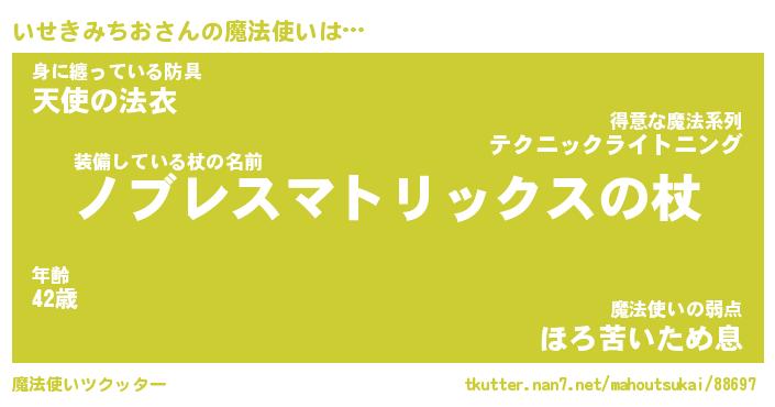 | ヒーロー風カッコイイあだ名 | 『スーパーイセキミチオ』『幻影騎士イセ』 |