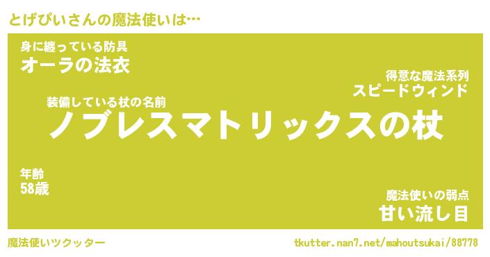 | 意味不明あだ名 | 『ペロリンとげぴい』『永久保存とげぴい』 |