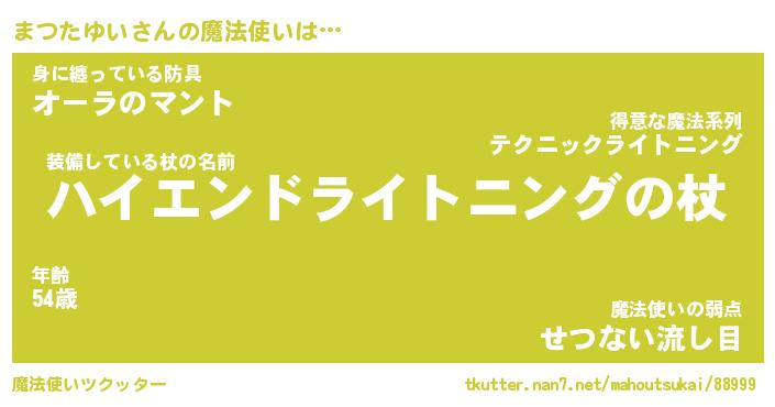 | ファンタジー風あだ名 | 『マツフェル』『エターナルマツタユイー』 |