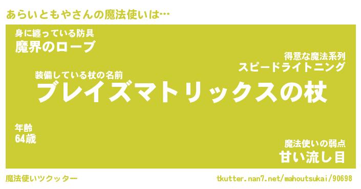 | 肩書あだ名 | 『あらいともや社長』『あらいともや班長』 |