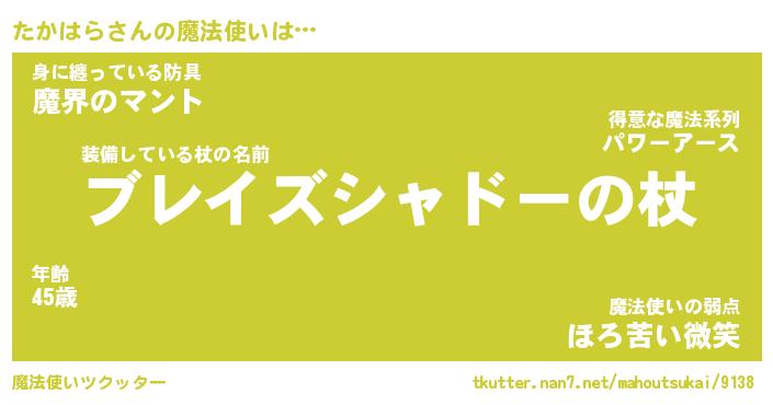 | 伝説のあだ名 | 『不死鳥の竜騎士たかはら』 |