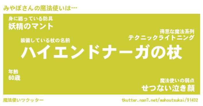 | ファンタジー風あだ名 | 『ミヤフェル』『エターナルミヤポー』 |