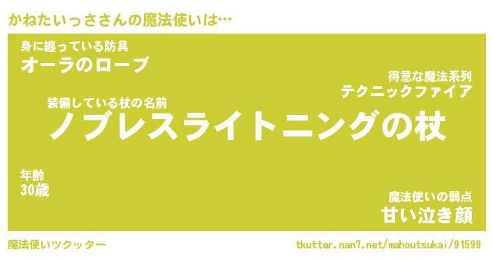 | ヒーロー風カッコイイあだ名 | 『スーパーカネタイッサ』『天弓騎士カネ』 |