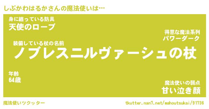 | 女子向けラノベタイトル風あだ名 | 『誰かこのしぶかわはるかを説明してください! ~契約から始まるウェディング~』 |