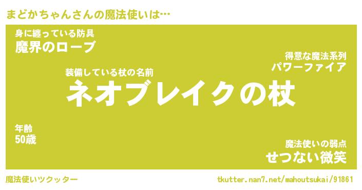 | ヒーロー風カッコイイあだ名 | 『スーパーマドカチャン』『炎刃騎士マド』 |