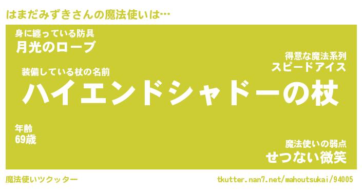 | 男性向けラノベタイトル風あだ名 | 『ハマダミズキアートオンライン』 |