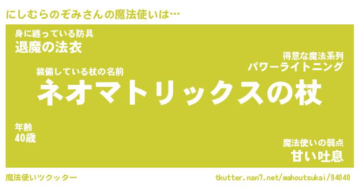 | 伝説のあだ名 | 『不死鳥の竜騎士にしむらのぞみ』 |