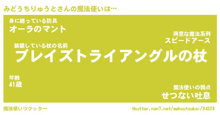 | 肩書あだ名 | 『みどうちりゅうと店長』 |
