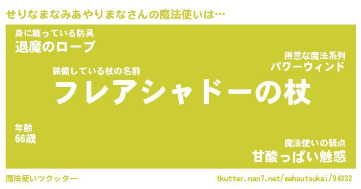 | ファンタジー風あだ名 | 『セリフェル』『ファントムセリス』 |