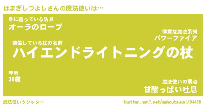 | ヒーロー風カッコイイあだ名 | 『スーパーハマギシツヨシ』 |