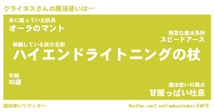 | ファンタジー風あだ名 | 『クラフェル』『エターナルクライネスー』 |