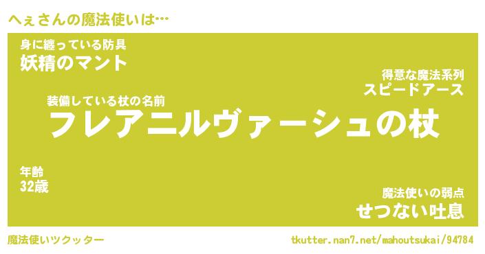 | ポケモン風あだ名 | 『ヘェチュウ』『ヘェダネ』『ヒヘェ』 |