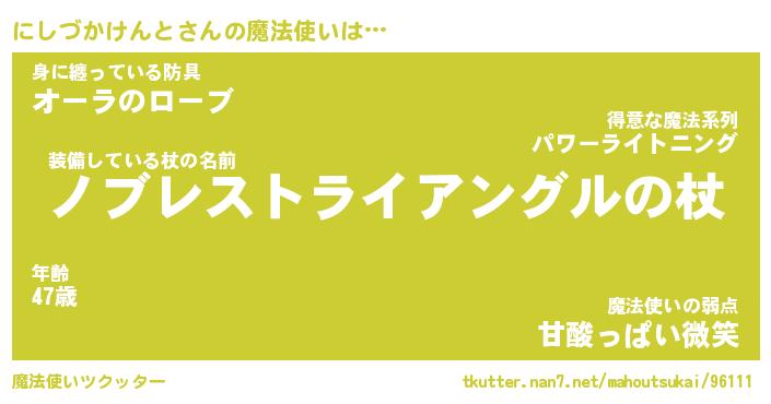 | ツイッター | にしづかけんとさんのツイッターID『namakemono_idle』 |