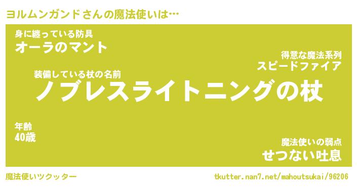 | 男性向けラノベタイトル風あだ名 | 『ヨルムンガンドアートオンライン』 |