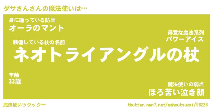 | ファンタジー風あだ名 | 『ダサフェル』『エターナルダササンー』 |
