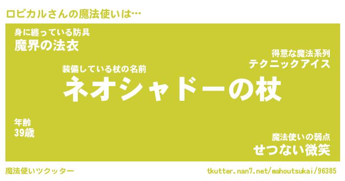 | ヒーロー風カッコイイあだ名 | 『スーパーロピカル』『天弓騎士ロピ』 |