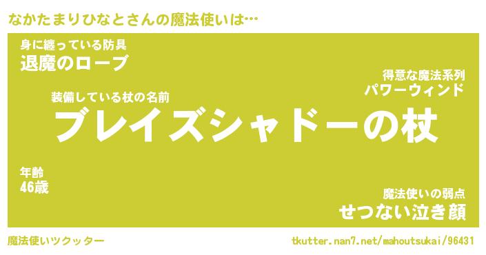 | 伝説のあだ名 | 『不死鳥の竜騎士なかたまりひなと』 |