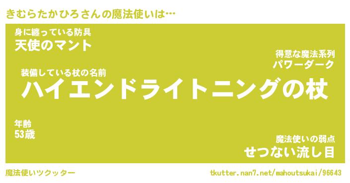 | 伝説のあだ名 | 『封印されし傭兵きむらたかひろ』 |