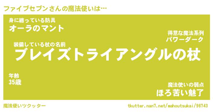 | ツイッター | ファイブセブンさんのツイッターID『kikurage_kun』 |