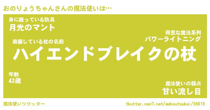| 男性向けラノベタイトル風あだ名 | 『オノリョウチャンアートオンライン』 |