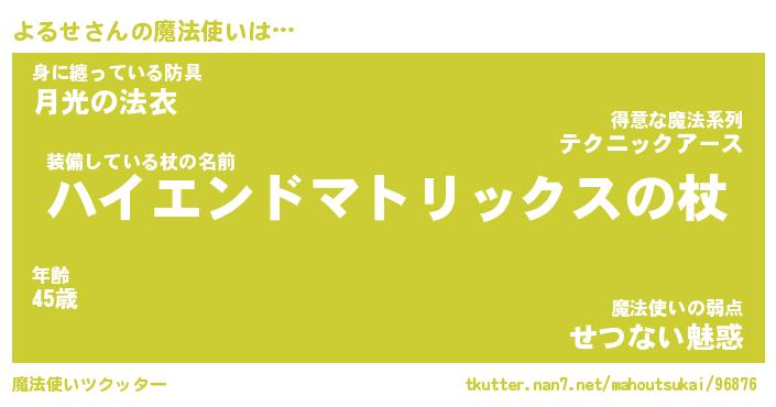 | ファンタジー風あだ名 | 『ヨルフェル』『エターナルヨルセー』 |