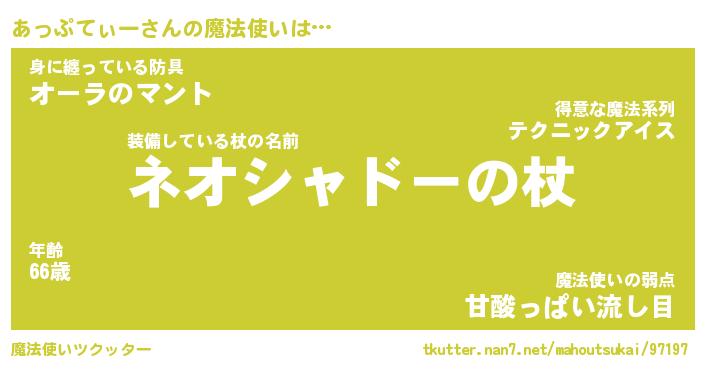 | ツイッター | あっぷてぃーさんのツイッターID『masyumaro_man』 |
