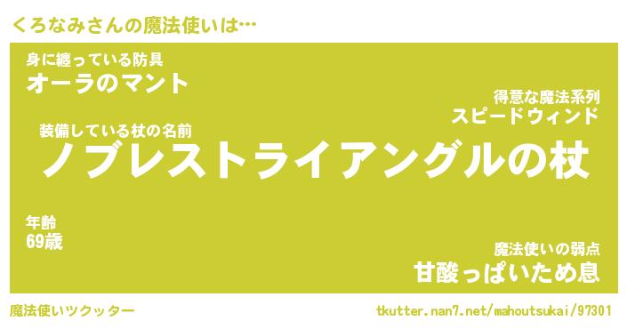 | ツイッター | くろなみさんのツイッターID『dendenmushi_kun』 |