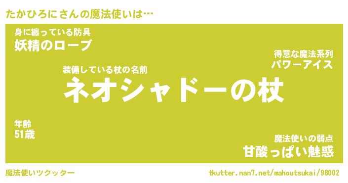 | ファンタジー風あだ名 | 『タカフェル』『エターナルタカヒロニー』 |