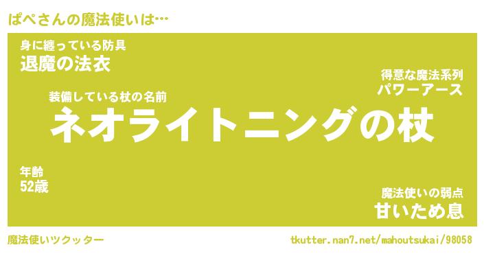 | ファンタジー風あだ名 | 『パペフェル』『エターナルパペー』 |