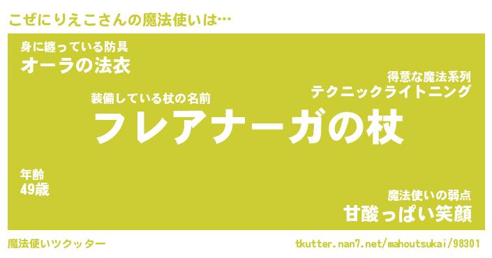 | 伝説のあだ名 | 『伝説のスナイパーこぜにりえこ』 |