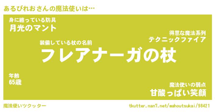 | 肩書あだ名 | 『あるびれお御曹司』『あるびれお班長』 |