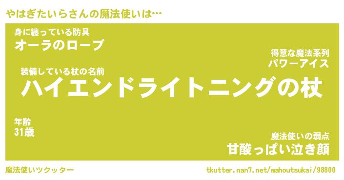 | 伝説のあだ名 | 『封印されし傭兵やはぎたいら』 |