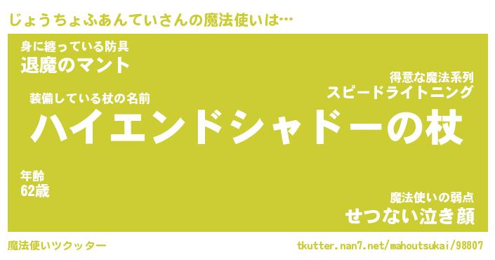 | 伝説のあだ名 | 『封印されし竜騎士じょうちょふあんてい』 |