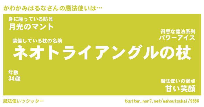 | 伝説のあだ名 | 『不死鳥の傭兵かわかみはるな』 |