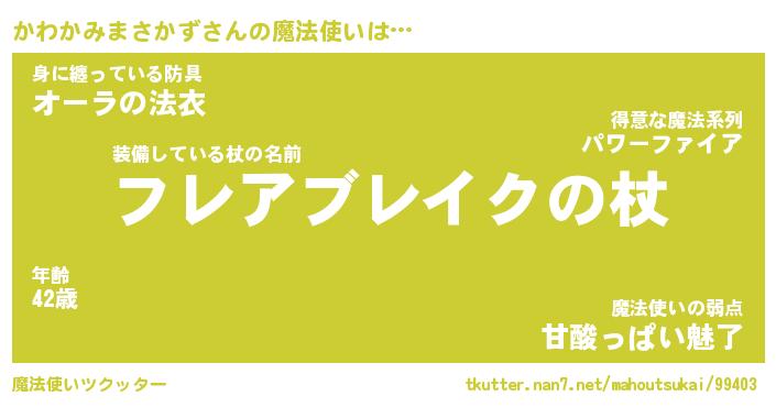 | 伝説のあだ名 | 『伝説の傭兵かわかみまさかず』 |
