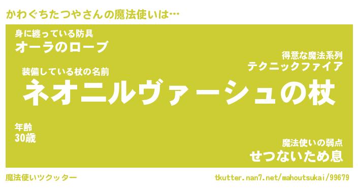 | 肩書あだ名 | 『かわぐちたつや御曹司』 |