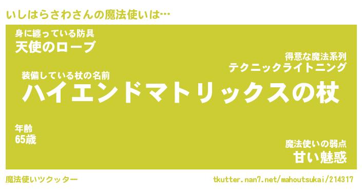 | 伝説のあだ名 | 『封印されし竜騎士いしはらさわ』 |