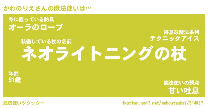 | ファンタジー風あだ名 | 『カワフェル』『エターナルカワノリエー』 |