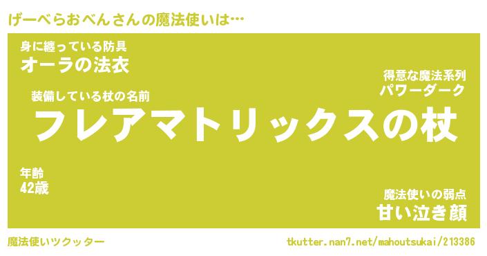 | 伝説のあだ名 | 『伝説の竜騎士げーべらおべん』 |