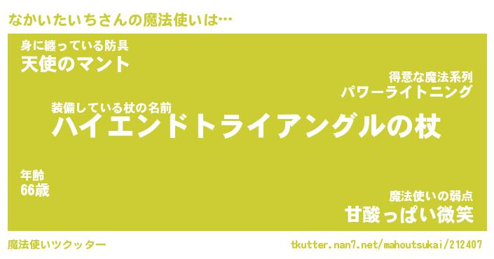 | 男性向けラノベタイトル風あだ名 | 『ナカイタイチアートオンライン』 |