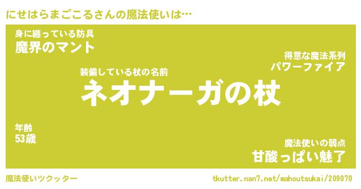 | 男性向けラノベタイトル風あだ名 | 『にせはらまごこるの憂鬱』 |