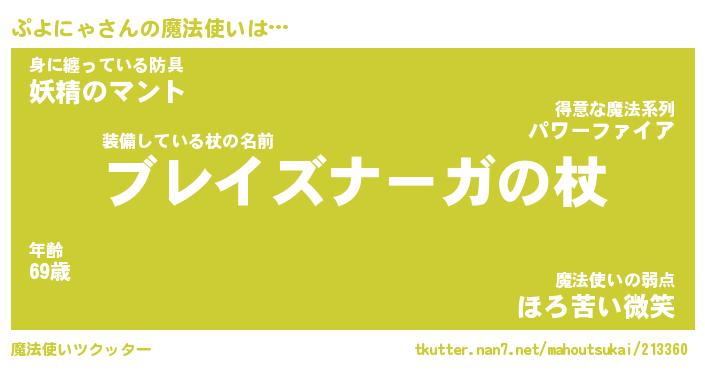 | 伝説のあだ名 | 『不死鳥のスナイパーぷよにゃ』 |