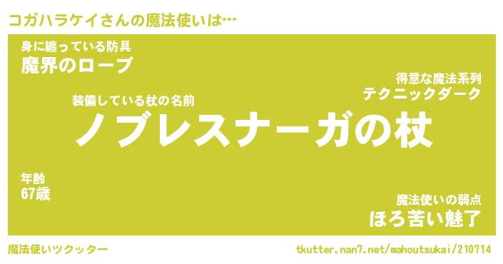 | 男性向けラノベタイトル風あだ名 | 『コガハラケイアートオンライン』 |