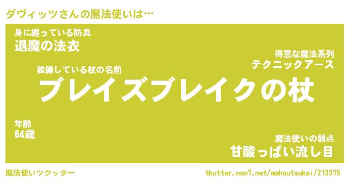 | ファンタジー風あだ名 | 『ダヴフェル』『エターナルダヴィッツー』 |