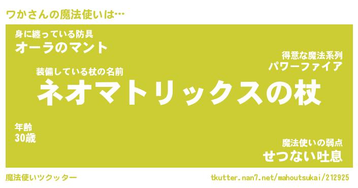 | ファンタジー風あだ名 | 『ワカフェル』『エターナルワカー』 |