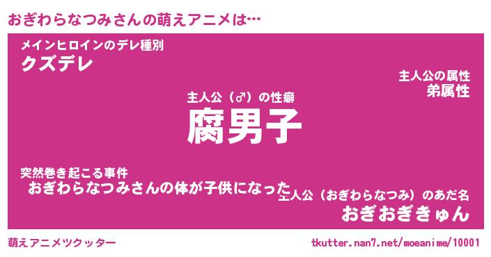 | 男性向けラノベタイトル風あだ名 | 『オギワラナツミアートオンライン』 |