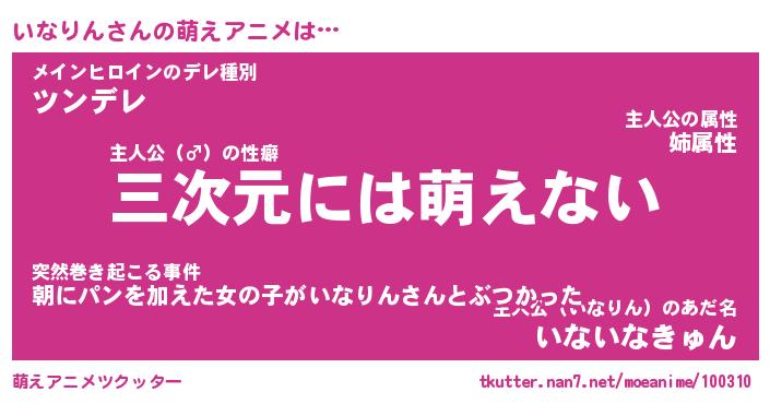 | 男性向けラノベタイトル風あだ名 | 『イナリンアートオンライン』 |