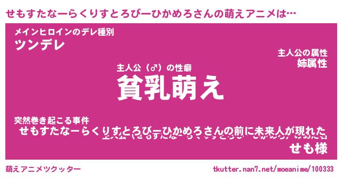 | 女子向けラノベタイトル風あだ名 | 『(仮)せもすたなーらくりすとろびーひかめろのやんごとなき事情』 |