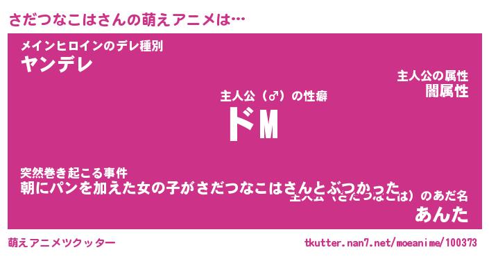 | 男性向けラノベタイトル風あだ名 | 『さだつなこはの憂鬱』 |